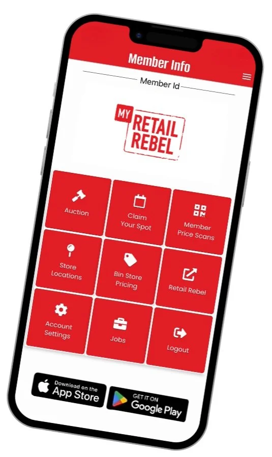Download the free My Retail Rebel App! Scan lots and place initial bids in-person at the Liberty Warehouse Auction!Track and increase bids on-the-go in the app.